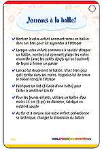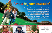 Quatre cartes laminées (4 po X 6 po). Grâce à un mousqueton, les parents peuvent fixer les cartes sur un sac à couches, une poussette, un sac à dos, etc. Chaque carte propose aux parents des suggestions d'activités physiques à faire avec leurs enfants selon la saison. Disponible en français, anglais, et en version culturellement adaptée pour les Autochtones.