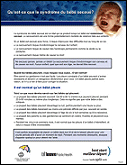 Ces feuillets fournissent des renseignements sur les pleurs des bébés et les moyens de les réconforter. Disponibles en français, en anglais et dans 17 langues par téléchargement seulement. Les feuillets ont un emplacement pour ajouter des coordonnées locales.