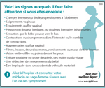 Petit autocollant contenant des renseignements importants pour reconnaître le travail prématuré et savoir quand obtenir de l’aide. |